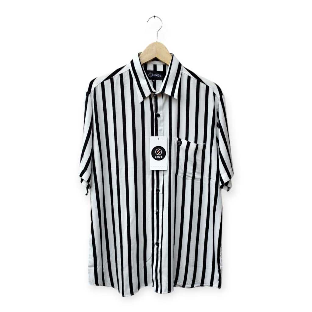 Kemeja Salur Cowok Premium Garis Garis Terbaru 2025 Kemeja Salur Pendek Cowok Korean Style Rayon Stripe