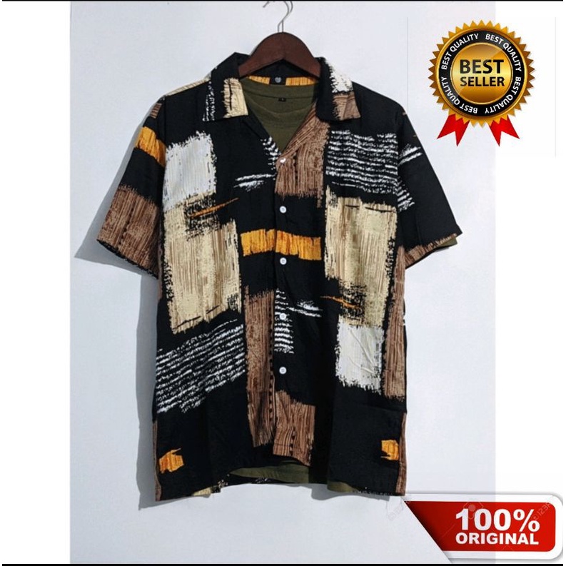 Kemeja Pantai Pria Surfing Lengan Pendek Cowok Hem Premium Distro Print Motif Koran Baju Pantai