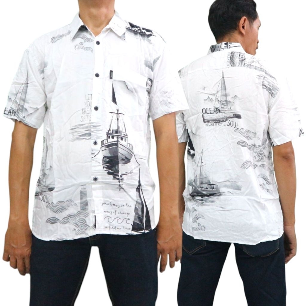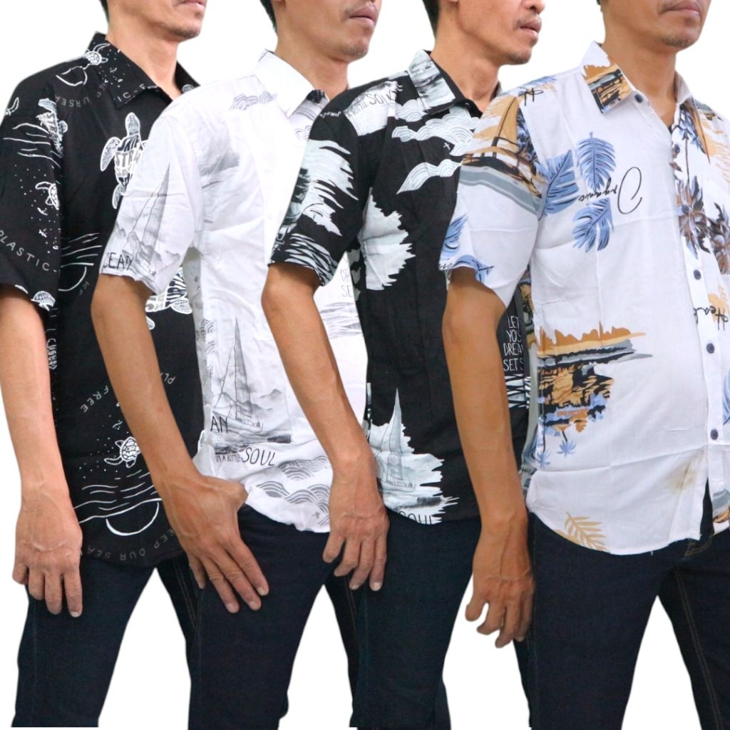 ASTRINA - Kemeja Pantai Hawaii Rayon Motif Bunga Lengan Pendek Baju Santai Hawaii Pria Kemeja Bali Pria Unisex&motif kem