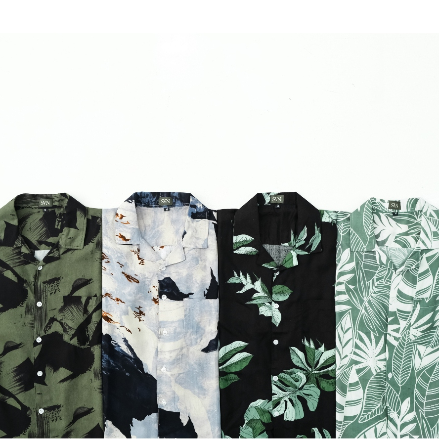 SAGI MEN - Kemeja Hawaiian Pantai Printing Unisex Pria Slimfit | Rayon V-neck