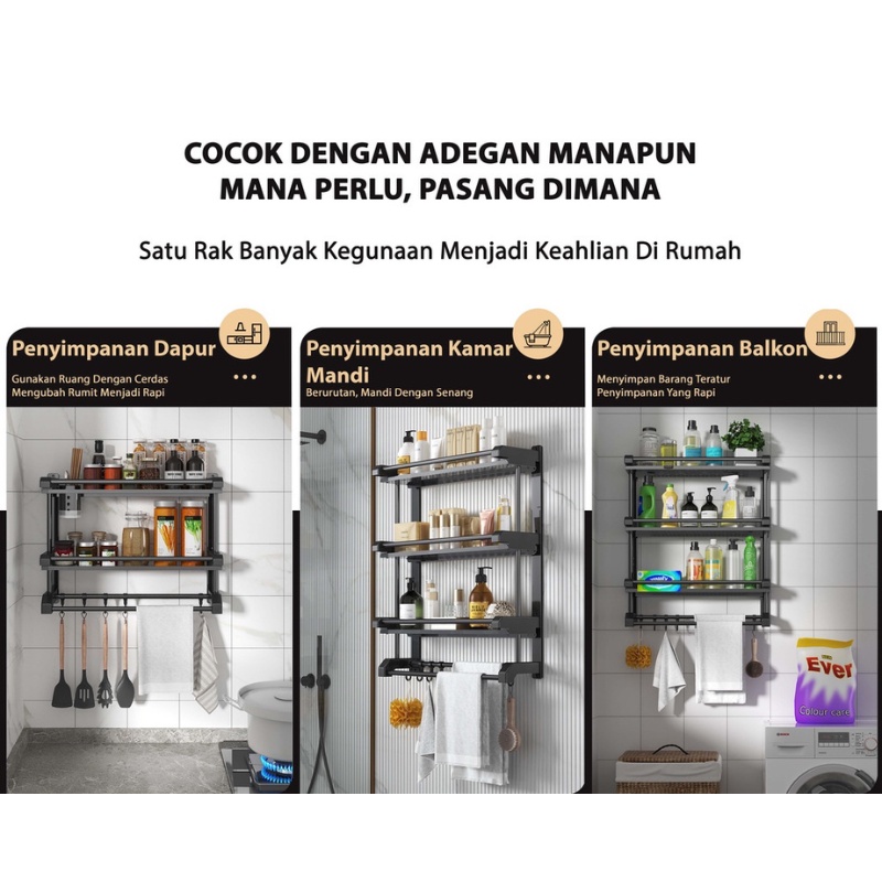 Ollahom Rak Sabun Kamar Mandi Rak Kamar Mandi Stainless Hitam Dinding Rak Bumbu Dapur