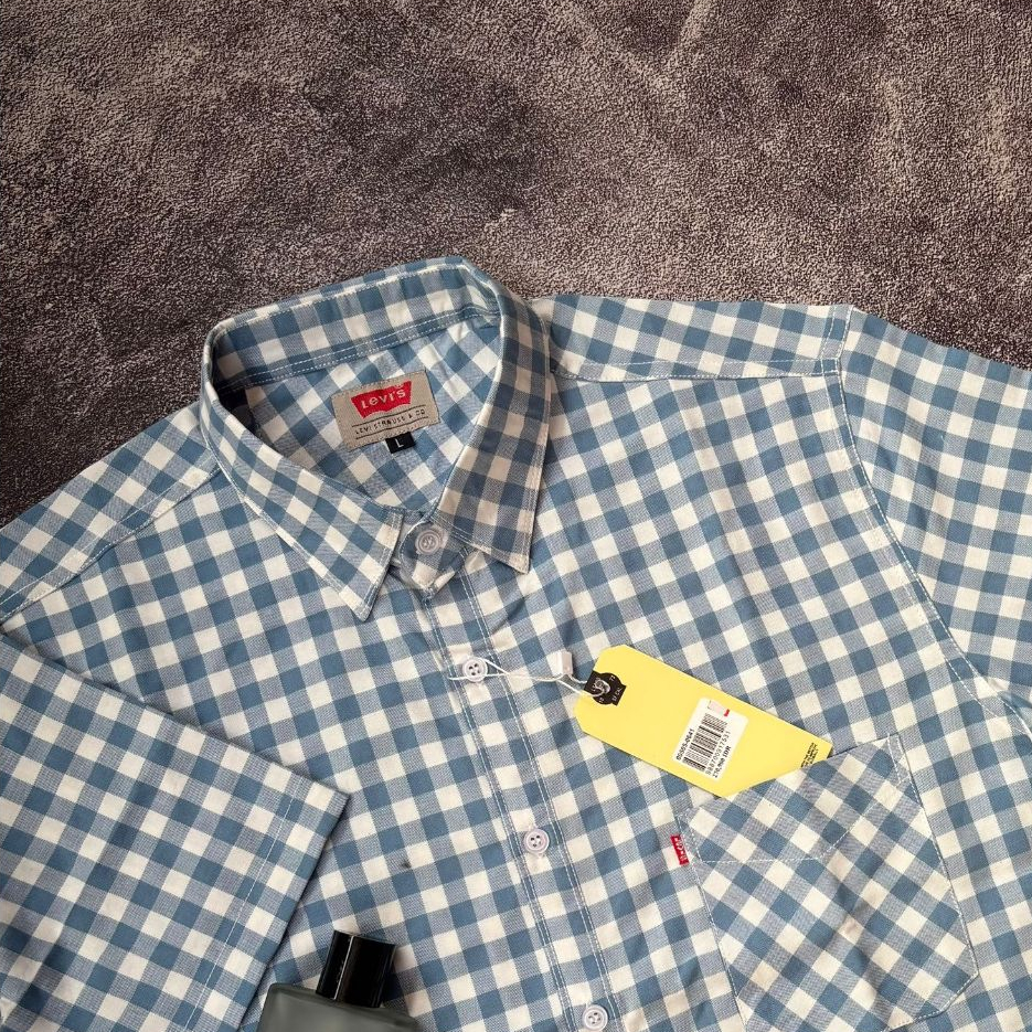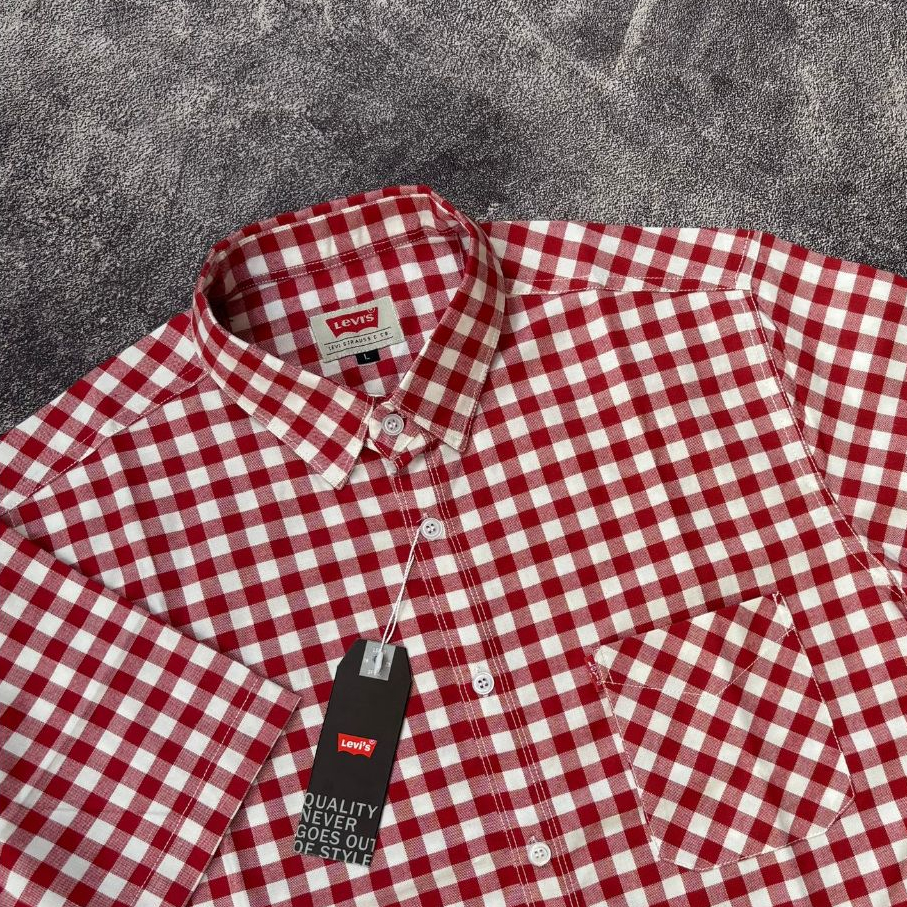 Kemeja Pria Gingham Lengan Pendek Formal Model Slim-Fit All Variants / Atasan Pria Dewasa