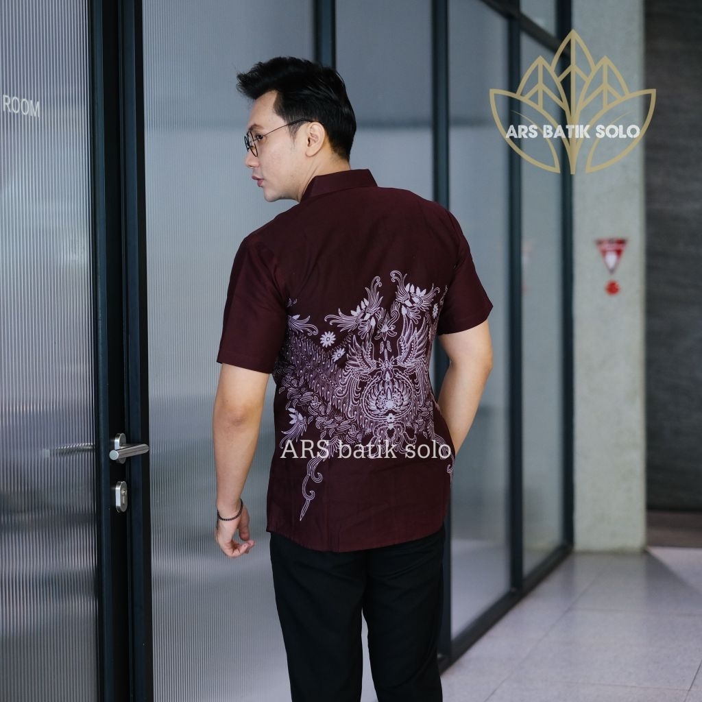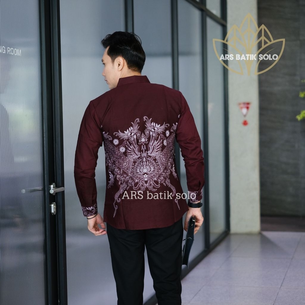 Batik ARS motif RENJANA BURGUNDY Kemeja batik pria SLIMFIT lengan panjang pendek bahan katun premium