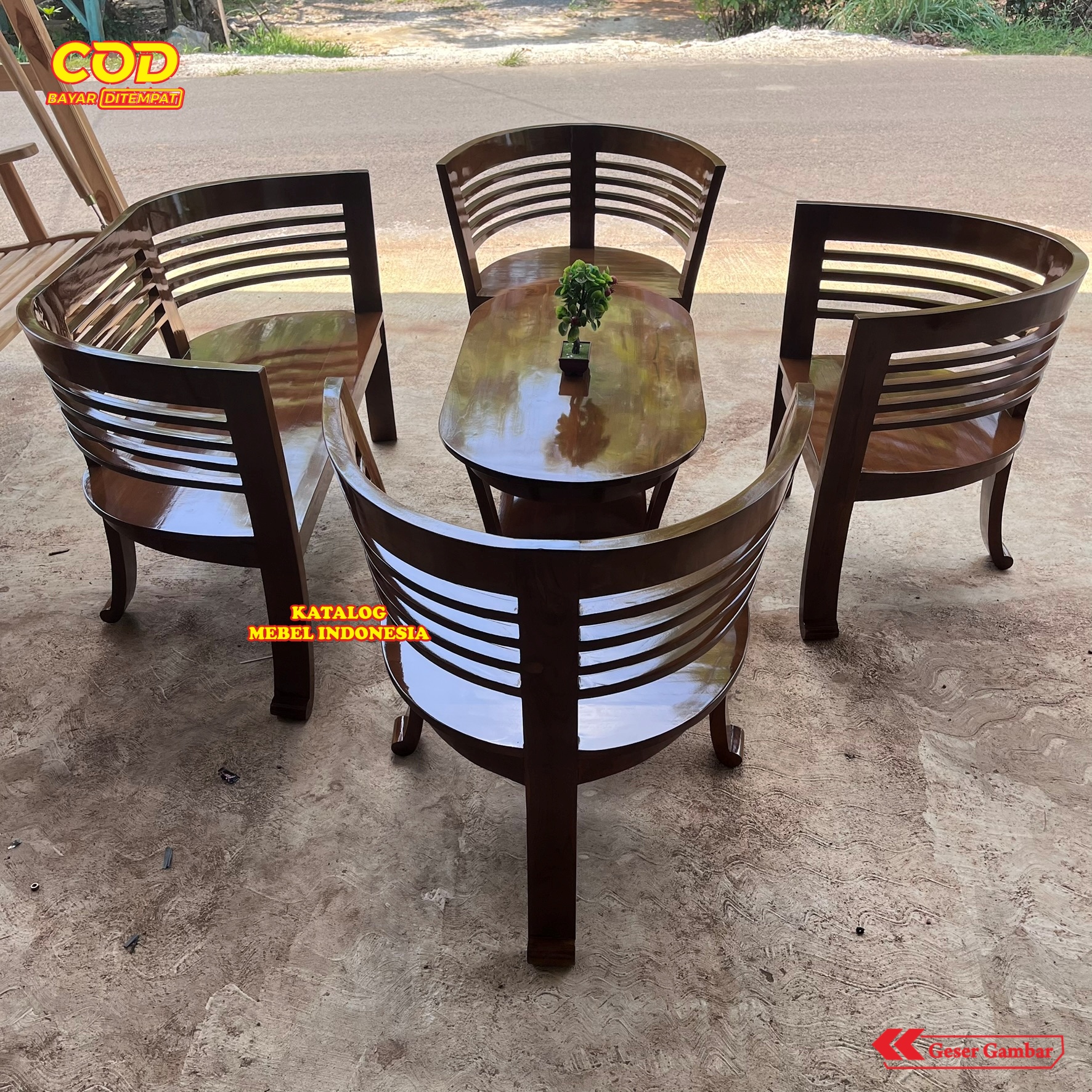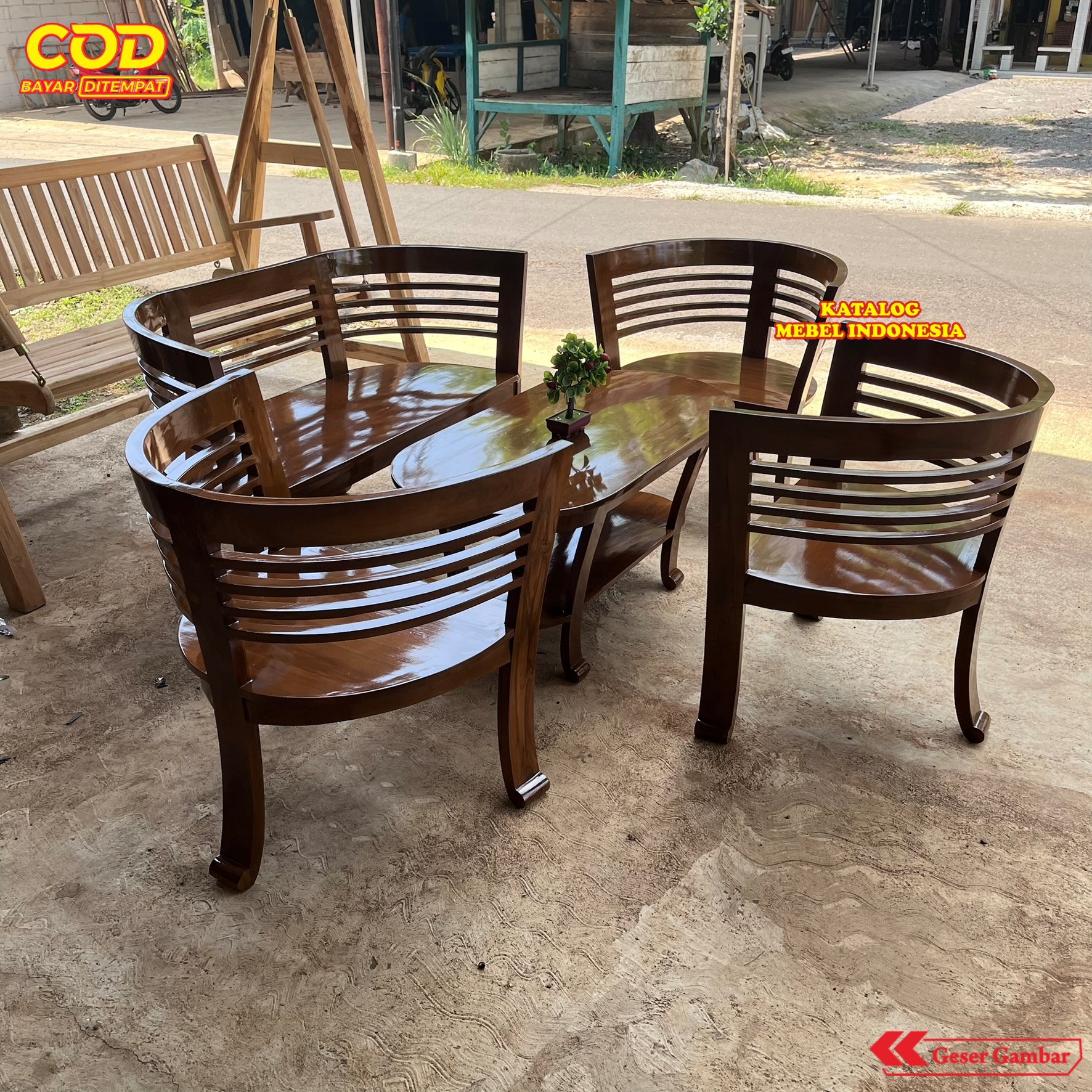 Kursi Tamu Jati Lengkung Set 4 + Meja Oval Ukir Furniture Ruang Tamu Klasik Modern