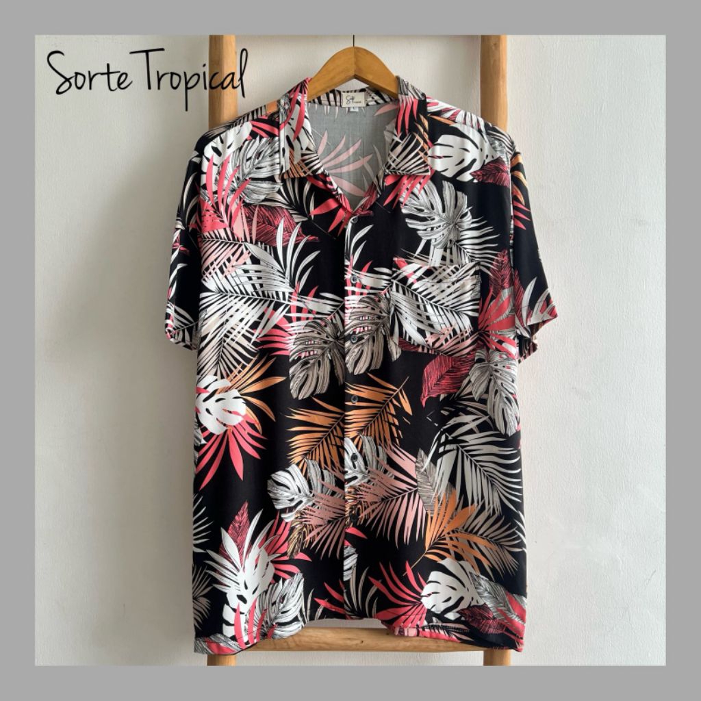 SORTE TROPICAL - Kemeja Floral Bunga Pantai Hawaiian Kasual Unisex Rayon Motif
