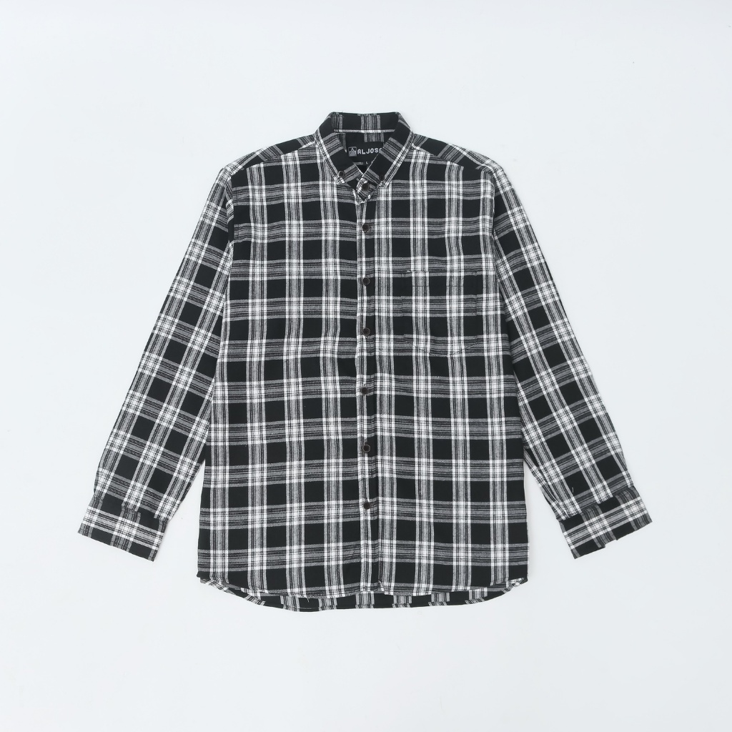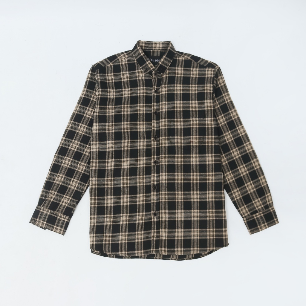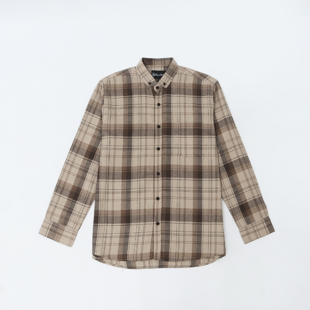 ALJOSA Kemeja Flannel Pria Lengan Panjang Hem Flanel Baju Cowok Motif Kotak Kotak Premium
