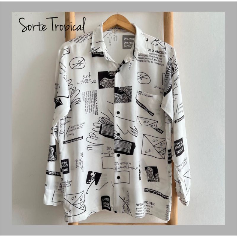 SORTE TROPICAL - Baju Kemeja Hawaiian Pantai Unisex Kasual Lengan Panjang Motif
