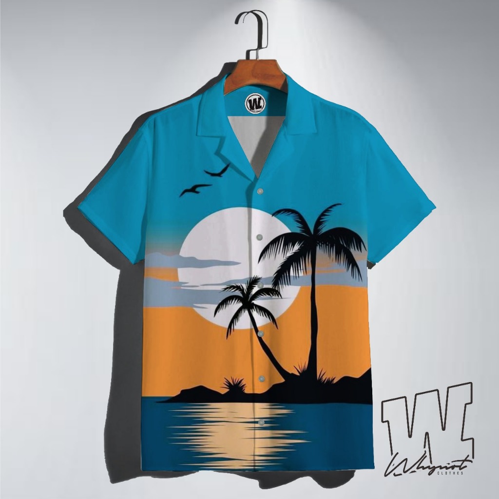 WHYNOTCLOTHING Kemeja PANTAI & SUNSET Kemeja Motif Kekinian Kemeja Full Printing Kemeja Premium Pria Wanita Kemeja Karak