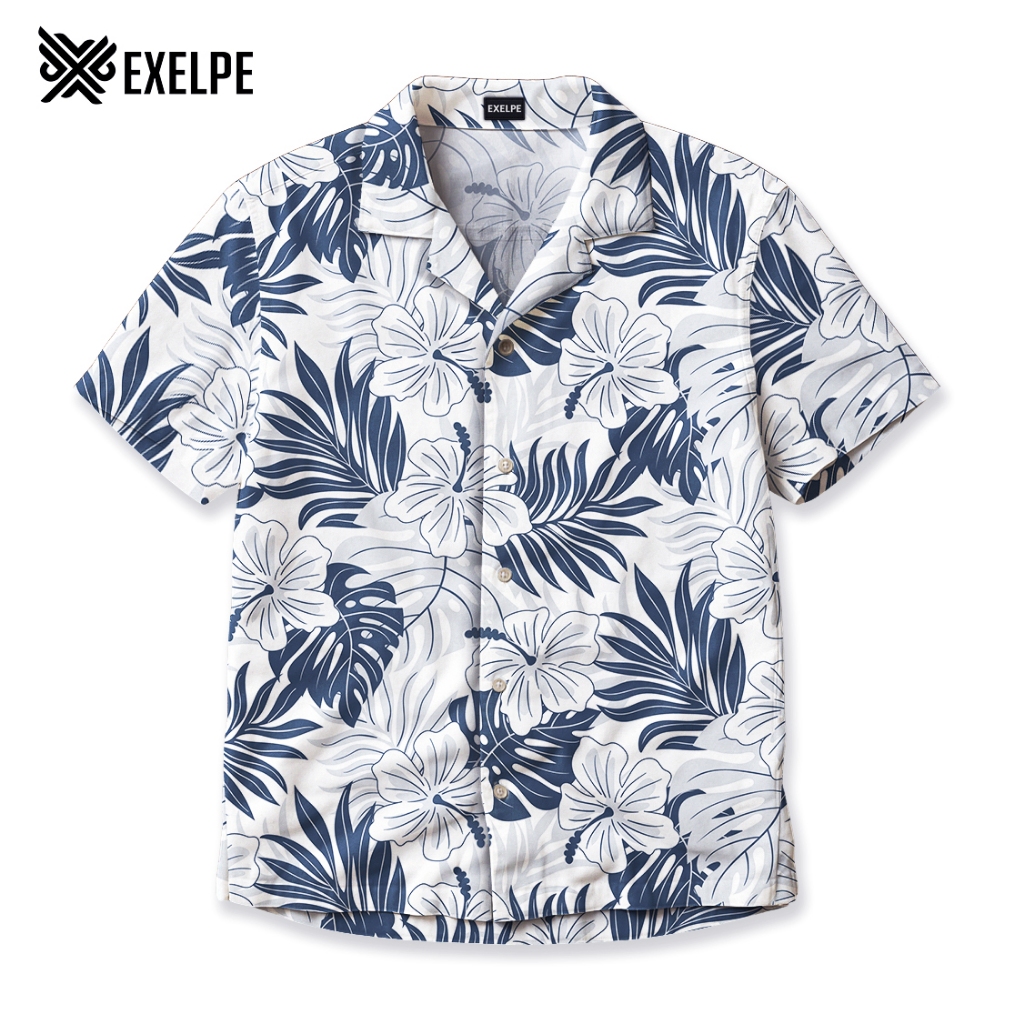EXELPE Kemeja Santai Pantai Bunga Hawaii