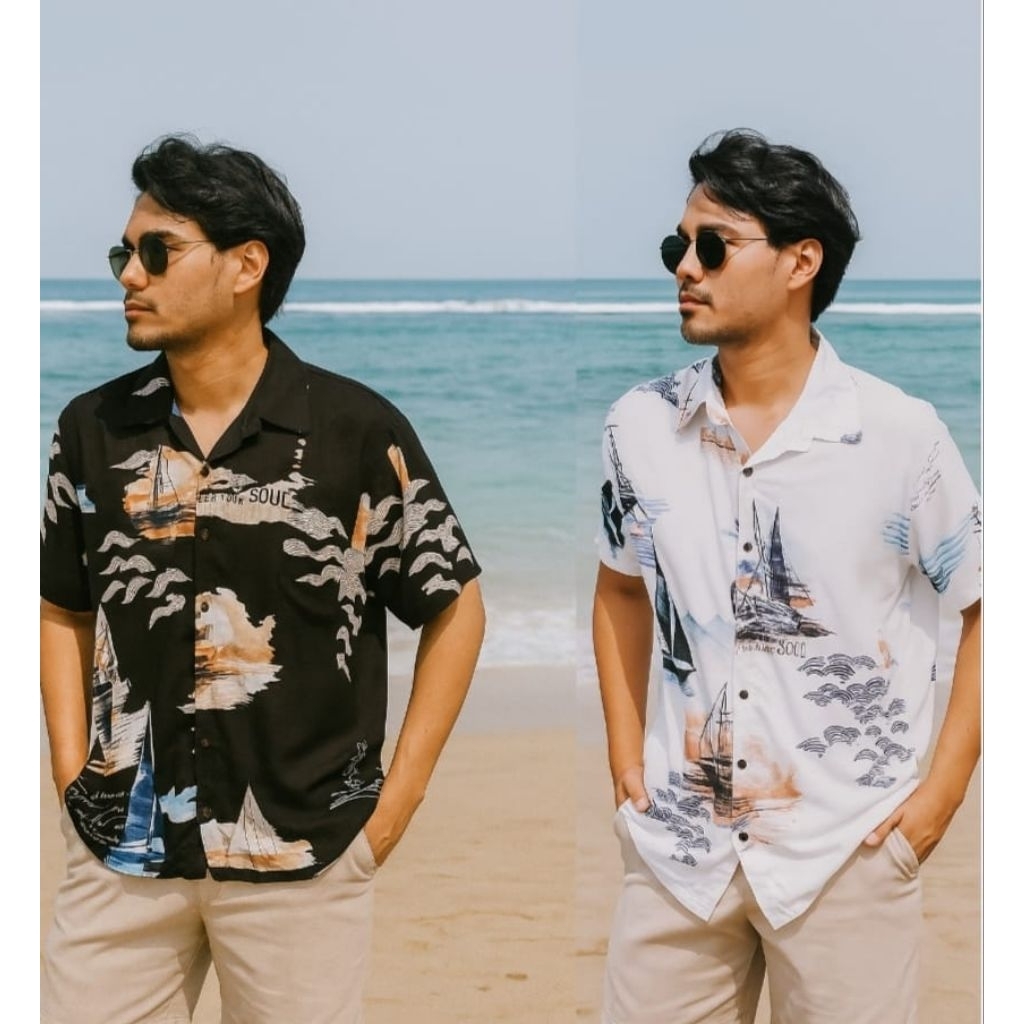 Kemeja Pria Printing/Kemeja Casual/Lengan Pendek/Motip Pantai/ Baju Santai Cowok Kemeja pria hawai/Kemeja pantai abstra