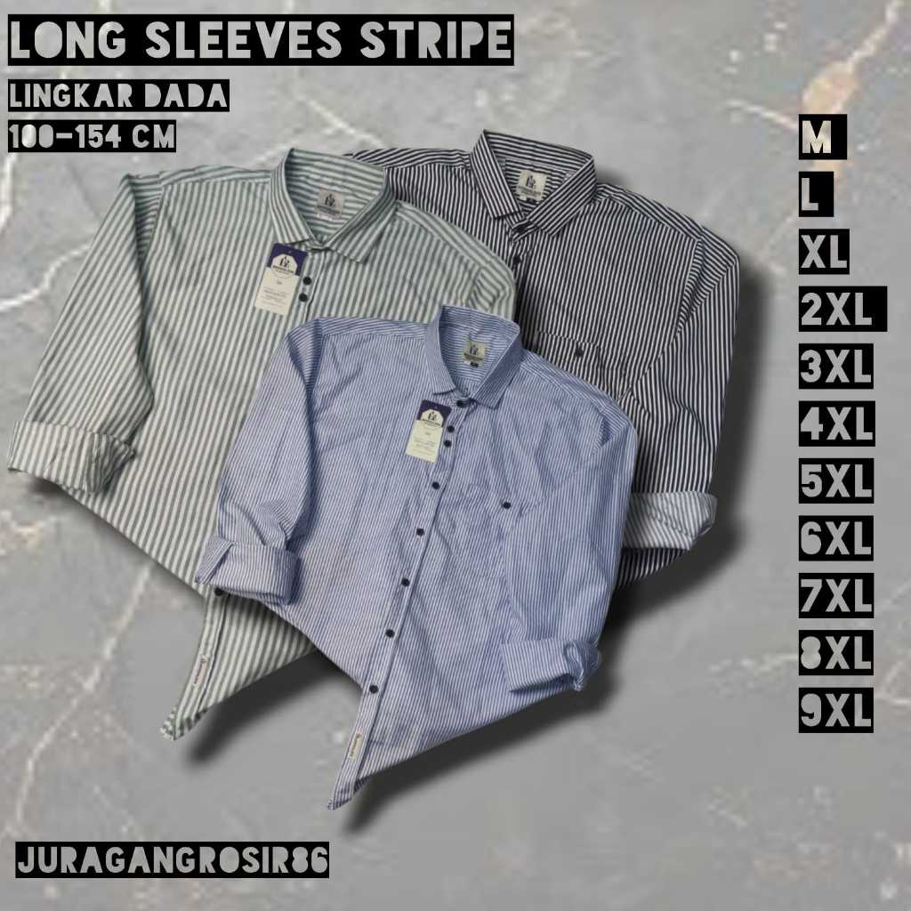 Kemeja Stripe Salur Dewasa Pria Wanita Lengan Panjang Jumbo Shirt Kemeja Garis Bahan Katun Premium Long Sleeves Hitam Bi