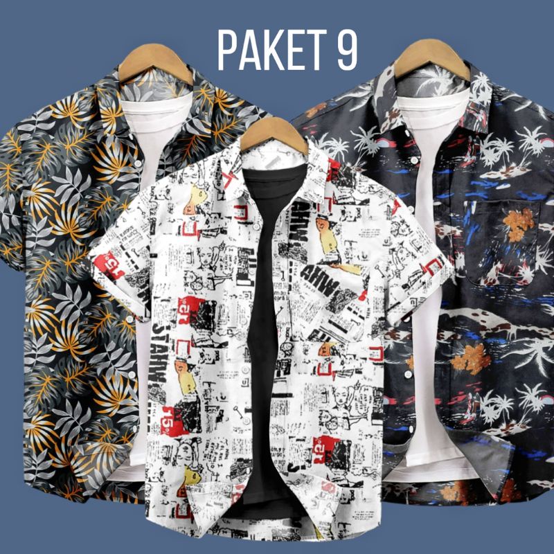 Paket 3 kemeja motif pantai motif surfing motif abstrak motif viral 2025
