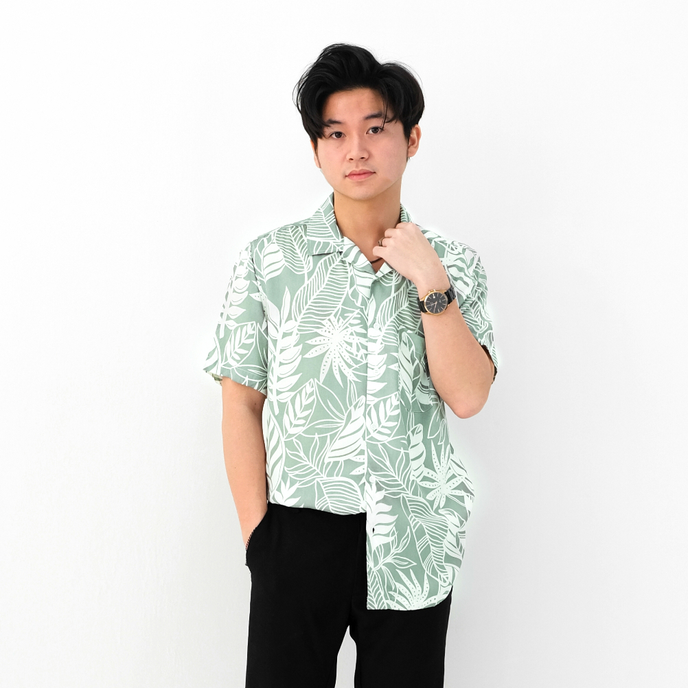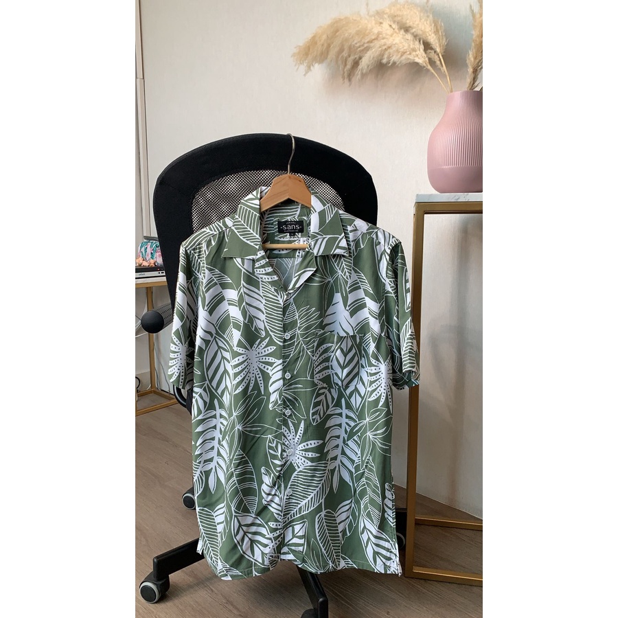 SANVANINA Kemeja Hawaiian Slim Fit Printing Panama | Kemeja Pantai Motif Abstrak Daun E-2004