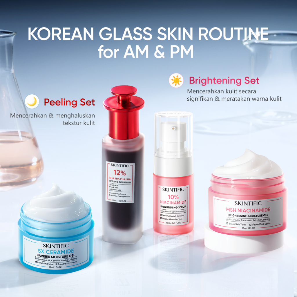 Skintific Official Store Glass Skin Routine 4pcs Skincare Wanita Glowing Bpom Skintific Moisturizer Sunscreen Serum