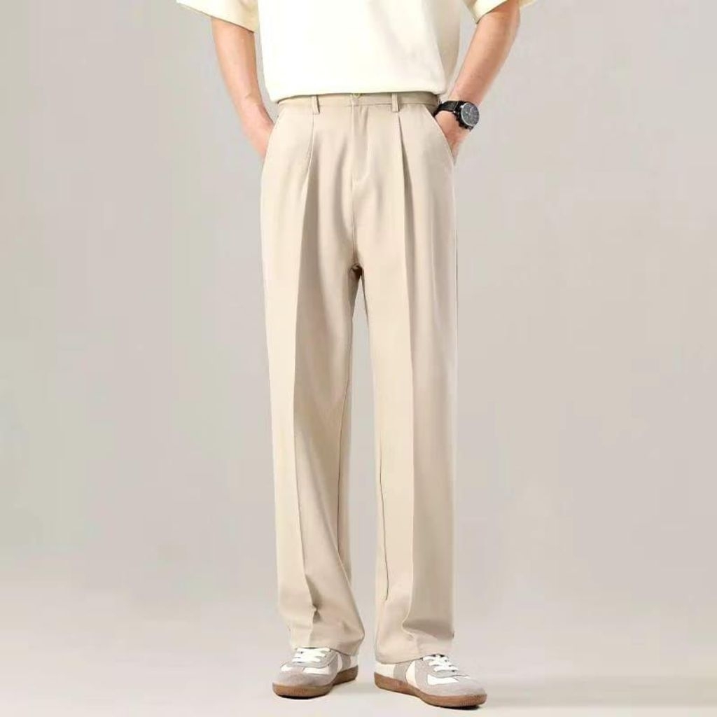 AKEHI - Celana Pria Formal Bahan Premium Loose Pants Cream 27-38