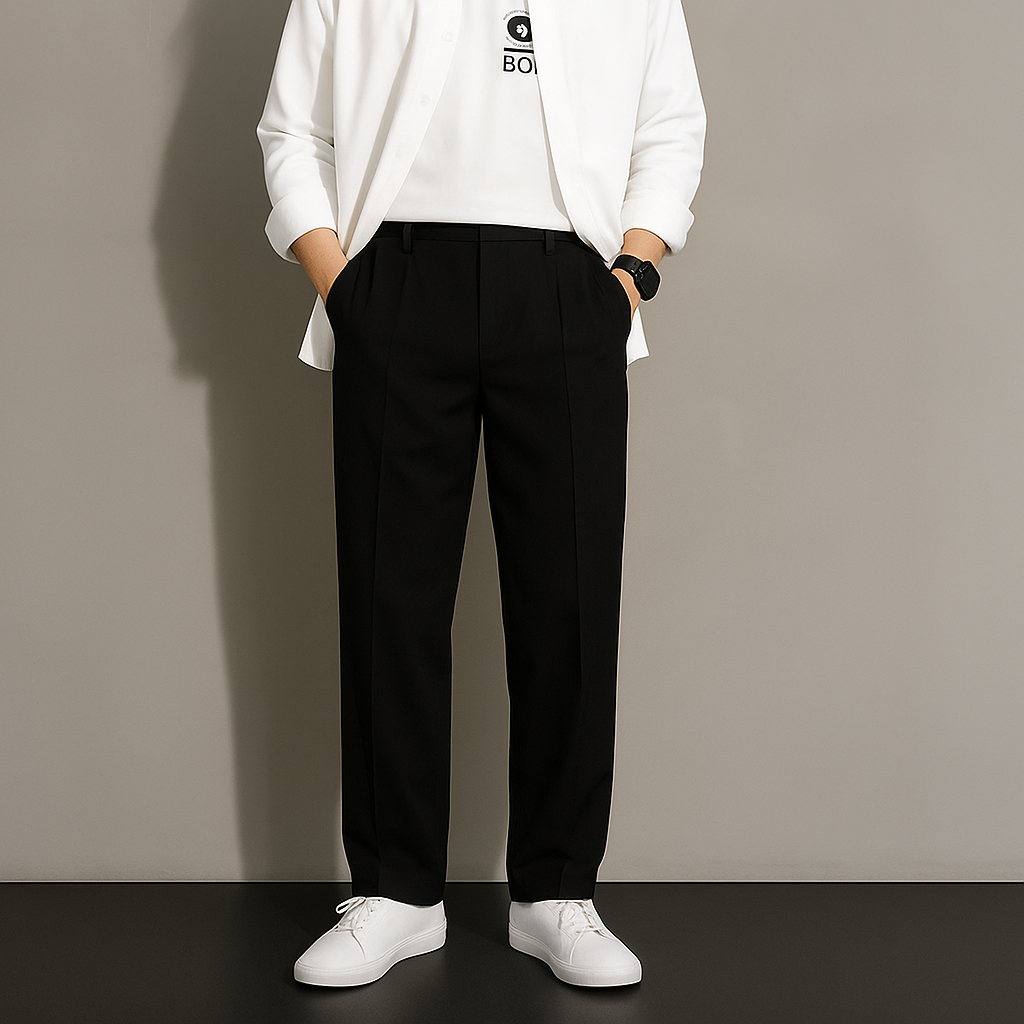 Steelborne - Celana Pria Formal Loose Pants Black High Quality