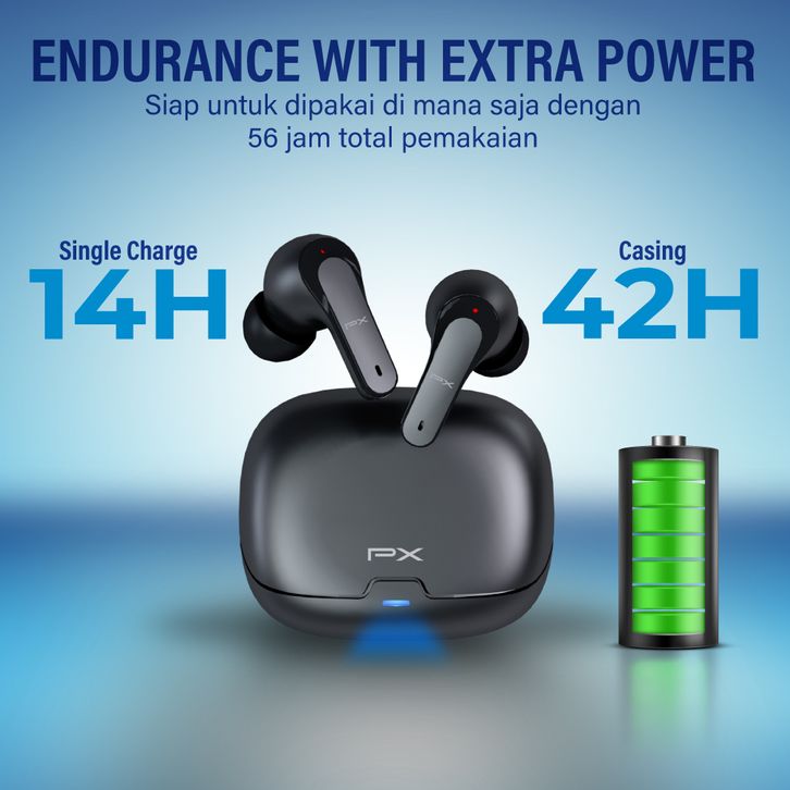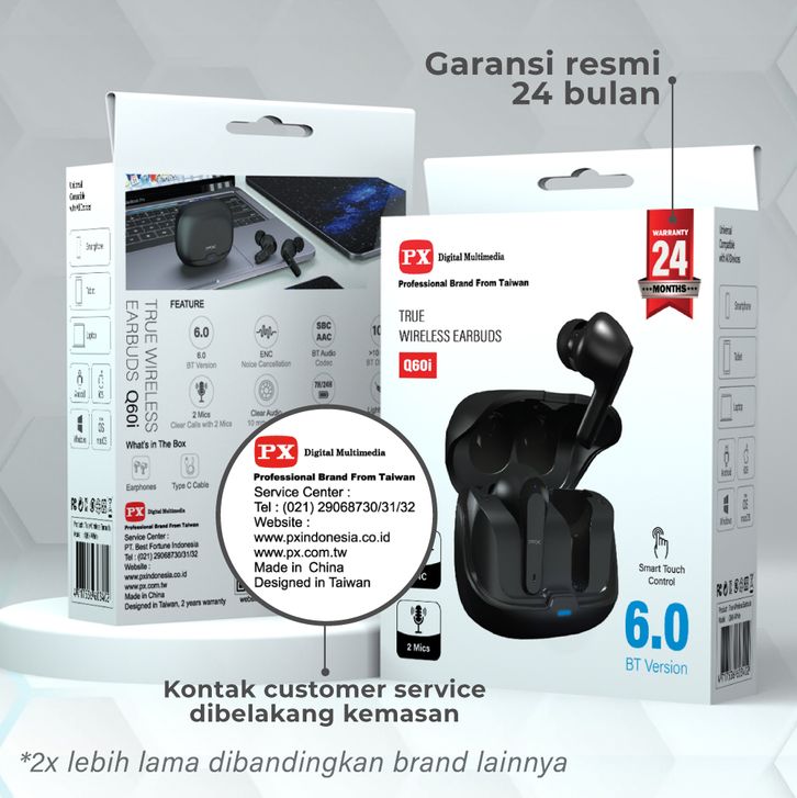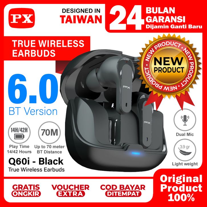 Headset TWS Earphone Bluetooth 6.0 Headphone Earbuds True Wireless PX Q60i - Black