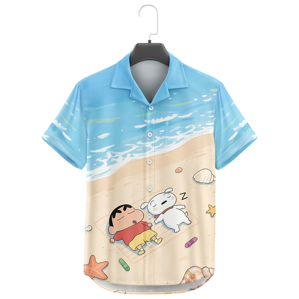 GOKS Baju Kemeja Motif Cowok Cewek Bali Pantai Surfing Hawai 763 SINCHAN PANTAI