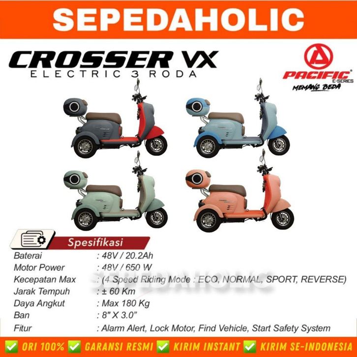 Sepeda Listrik Roda Tiga CROSSER VX BY PACIFIC / GENIO EASTON XL1 BY UNITED Electric Bike