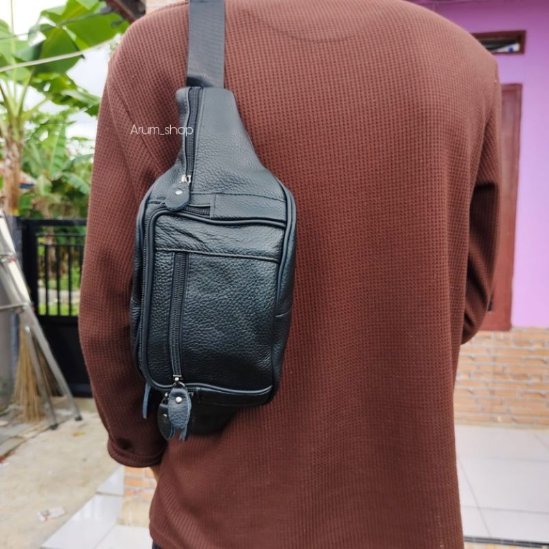 Terbaru tas selempang pria kulit asli Garut kulit tebal 6 Res