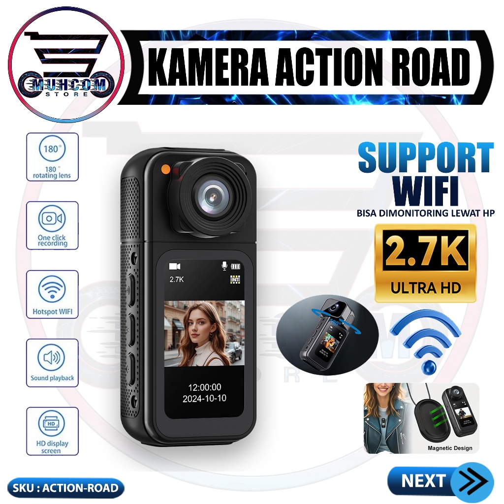 Muhcom Kamera Aksi ACTION-ROAD WiFi HD 2.7K Spy Camera Vlog Vidio Recorder Action Sports Cam Outdoor