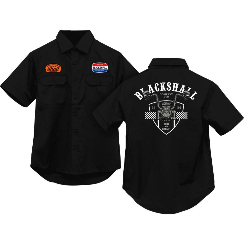 BLACKSHALL - BAJU KEMEJA WORKSHIRT PRIA LENGAN PENDEK MOTIF CUSTOM VINTAGE CLASSIC BAJU BENGKEL ENGINEERING SHORT SLEEVE