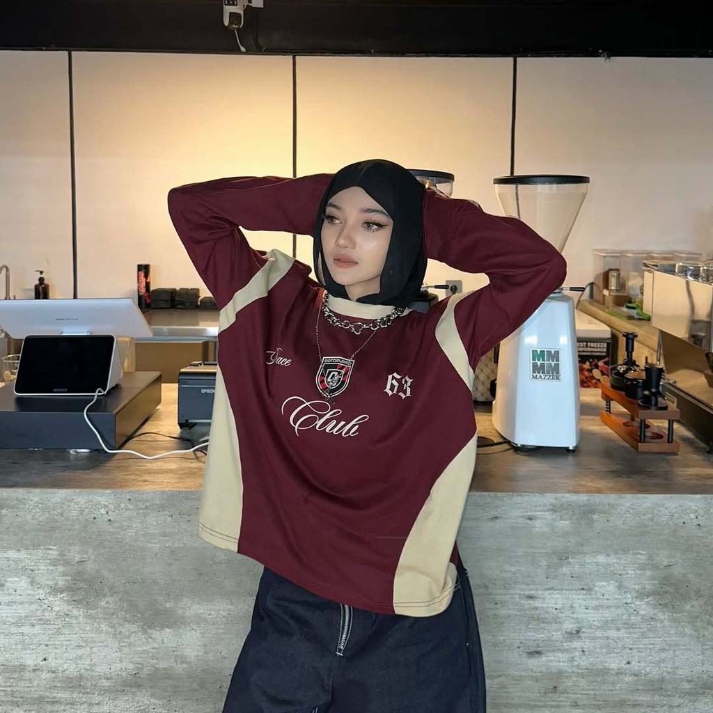 OOTDSUPPLY Longsleeve Boxy Slava Peace Club Maroon l Atasan Boxy Panjang Unisex | Kaos Lengan Panjang Pria dan Wanita |