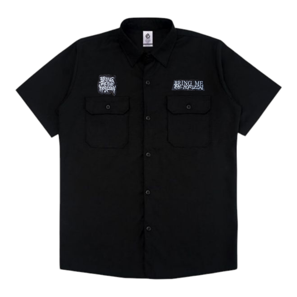Kemeja Pria Workshirt Top Man Lengan Pendek Casual Bordir Skena Hitz Tebal Kerja