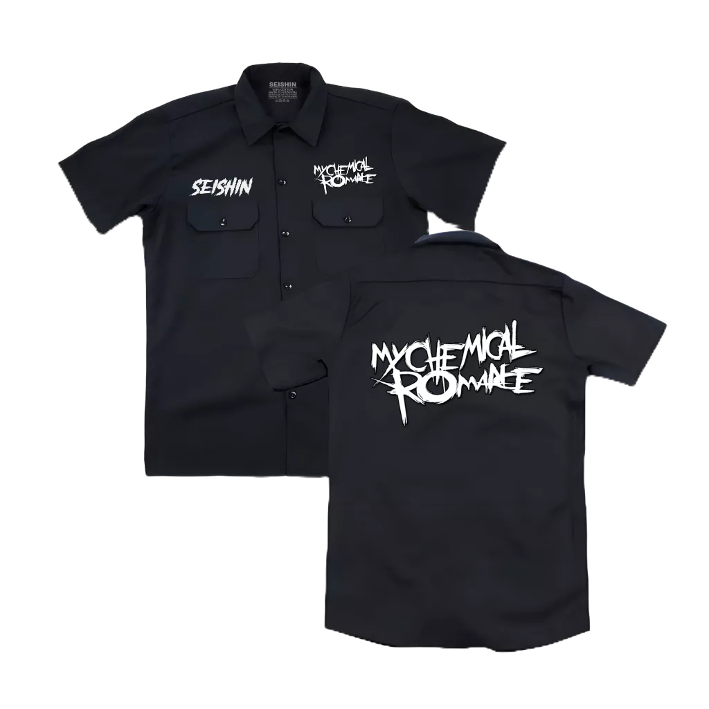 Kemeja workshirt unisex my chemical romance warna hitam kualitas distro tangan pendek