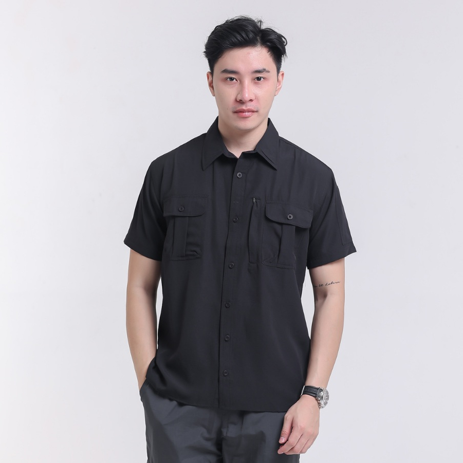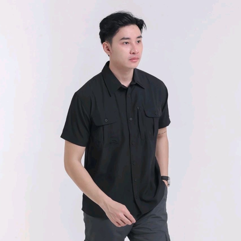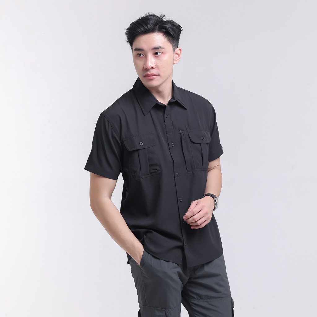 Troveast Kemeja Lengan Pendek Outdoor Work Shirt Lead Series Black