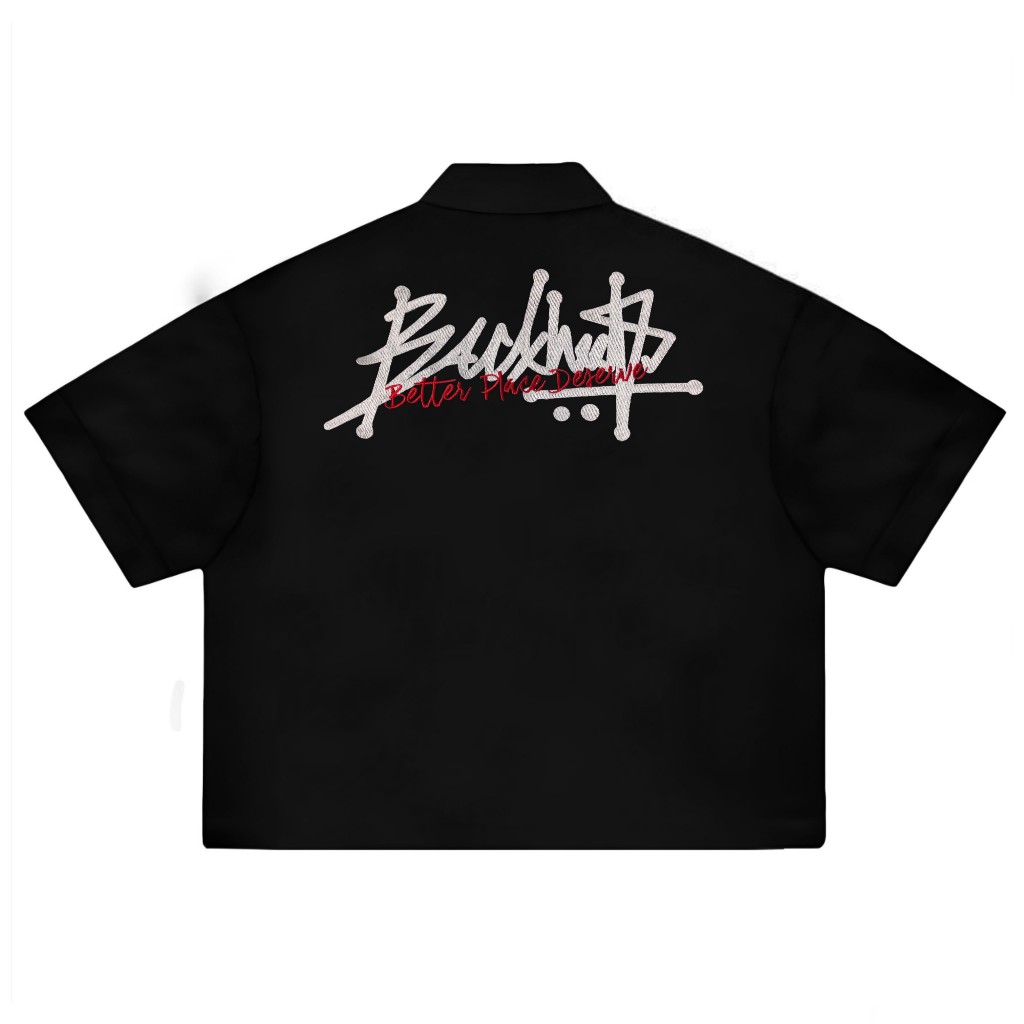 Backheels - Workshirt Zipper Boxy - Deserve - Kemeja kerja Hitam Unisex