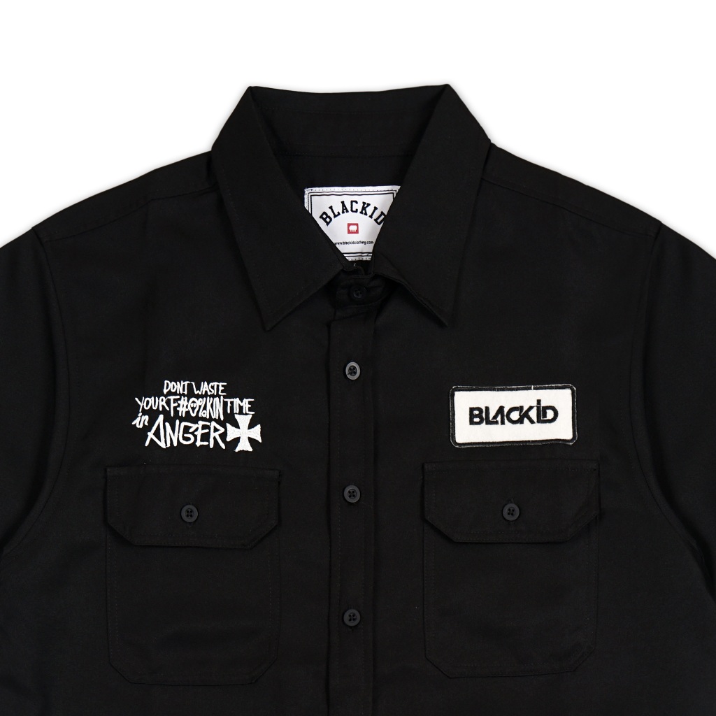 Black ID - Kemeja WorkShirt Lengan Pendek Pria Hitam | KMJ Kisho
