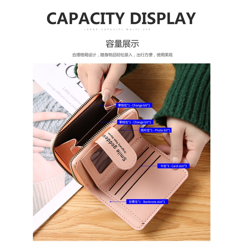 Smile Goddess Baru Wanita Dompet Pendek Ritsleting Tas Clutch Gaya Korea Fashion Pemegang Kartu Dompet 818