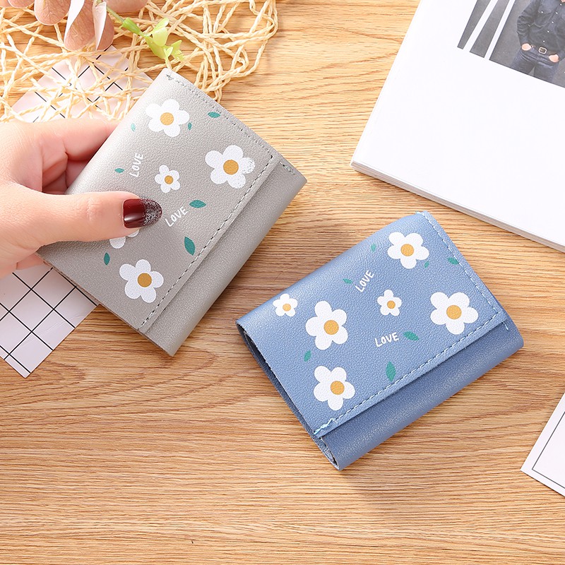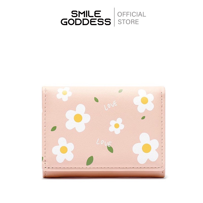 Smile Goddess Dompet Wanita Dompet Lipat Pendek Daisy Pattern Dard Holder H107