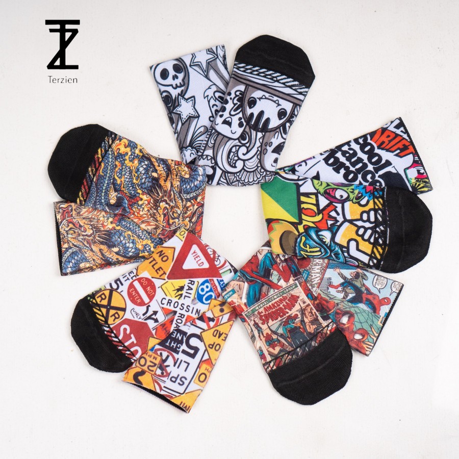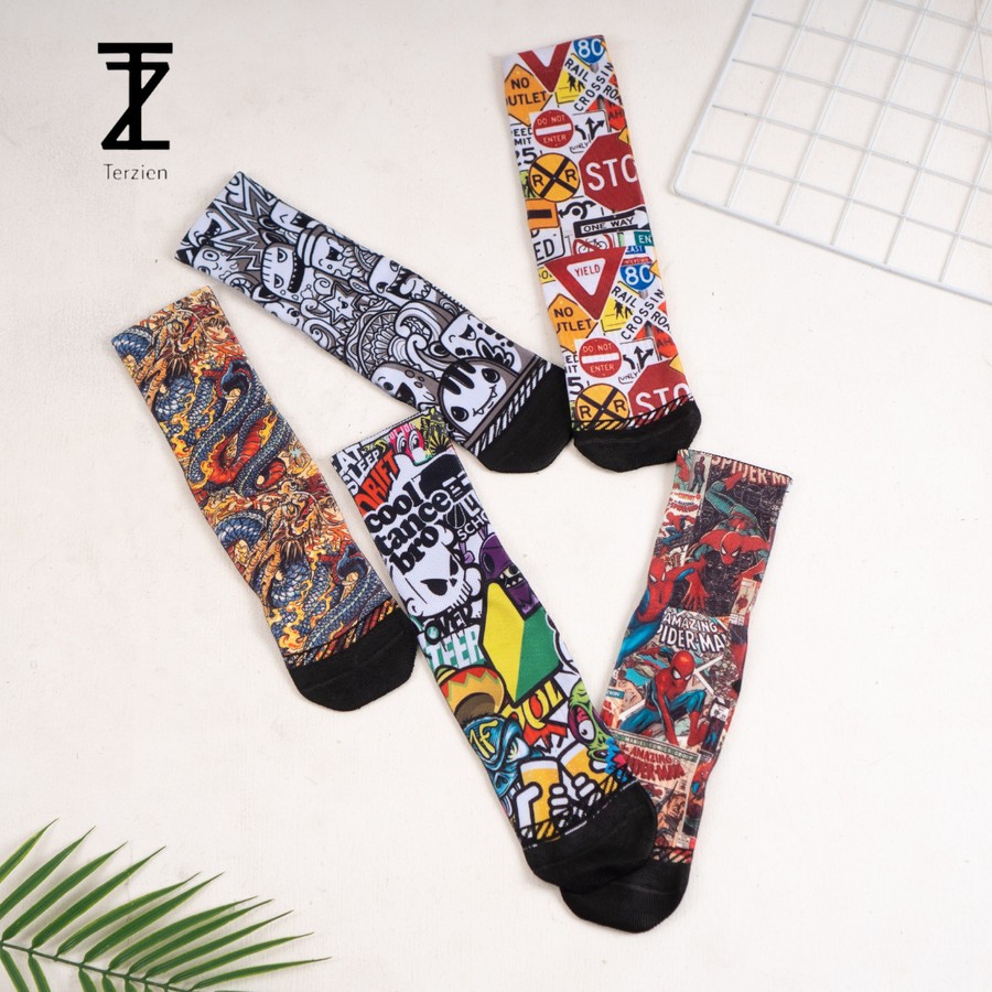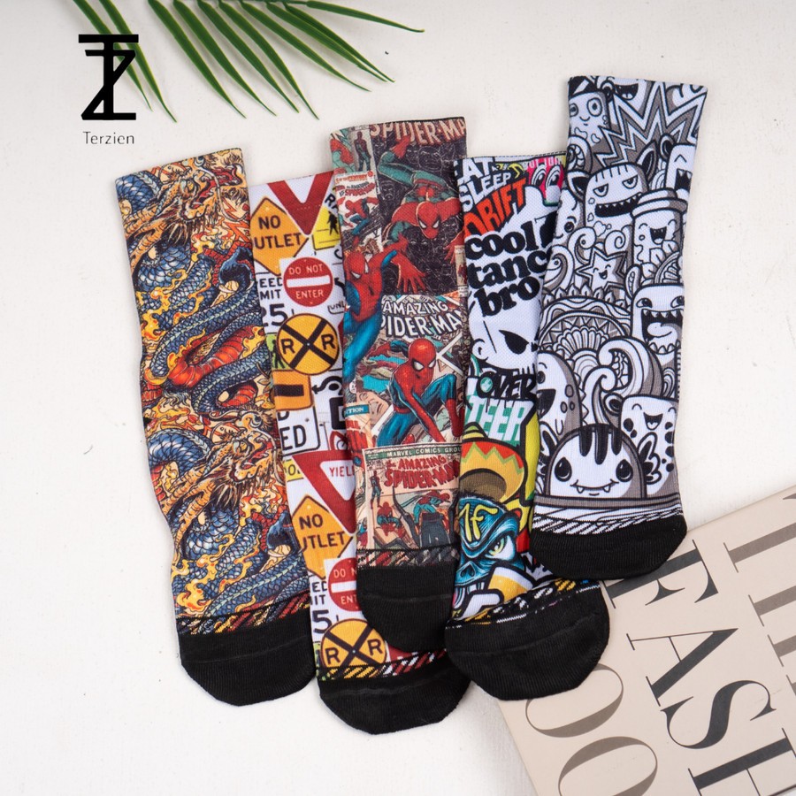 Terzien - Kaos Kaki Panjang Fullprint Pria Wanita 1 Box Isi 5 - G25