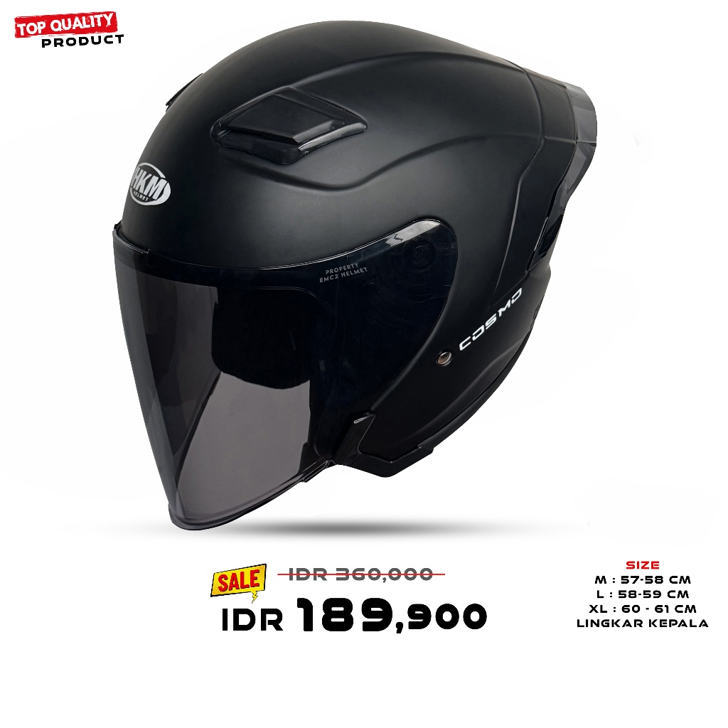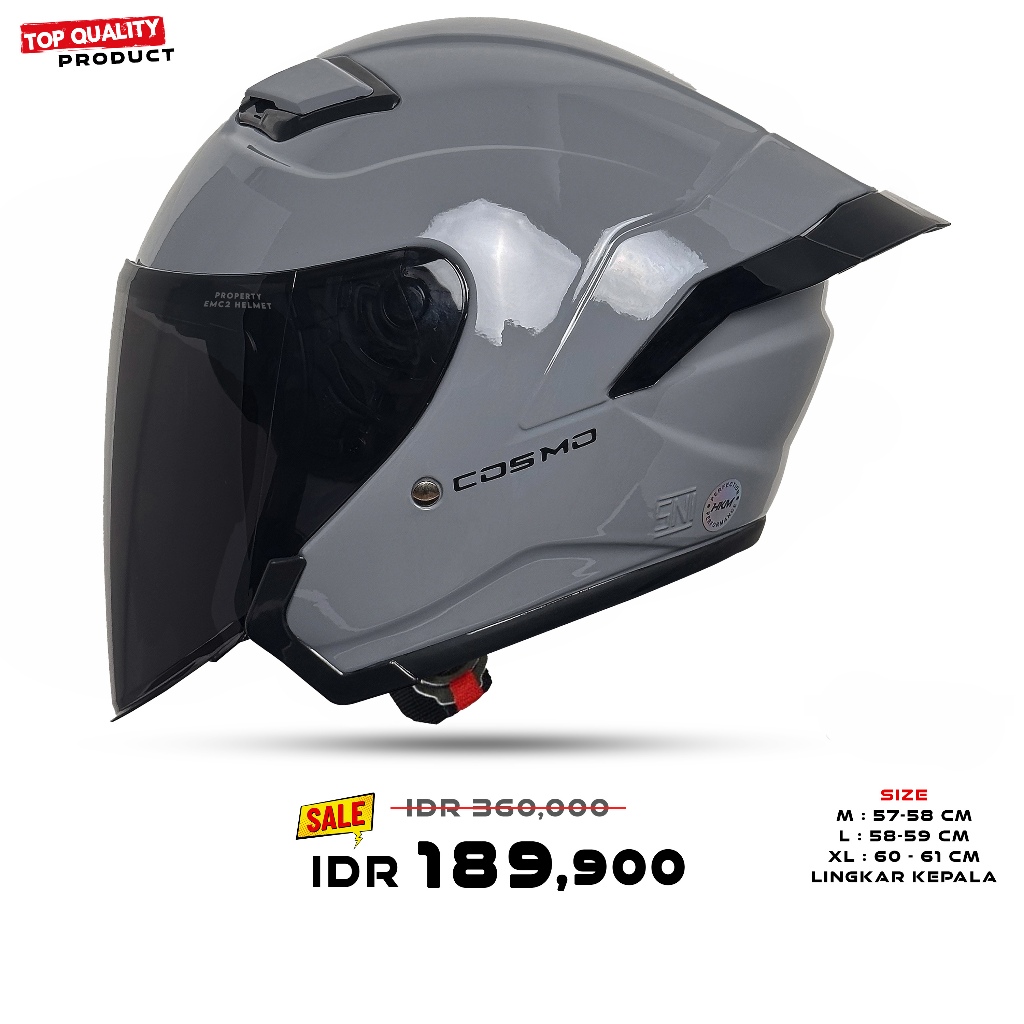 Helm Half Face MLA COSMO | Grey Glosy Kaca Hitam | Helm Premium Paket Ganteng Untuk Pria Dan Wanita