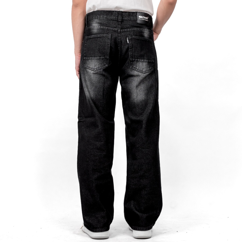 Gizmo - Celana Jeans Wide Leg Wisker Lebar Gombrong Skena Black Wisker pria loose fit jumbo big keren Bahan Denim