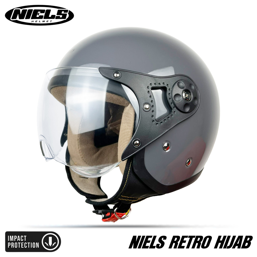 NIELS - Helm Bogo Retro Hijab Dewasa Kaca Pilot SNI Motorcycle Grey Glossy