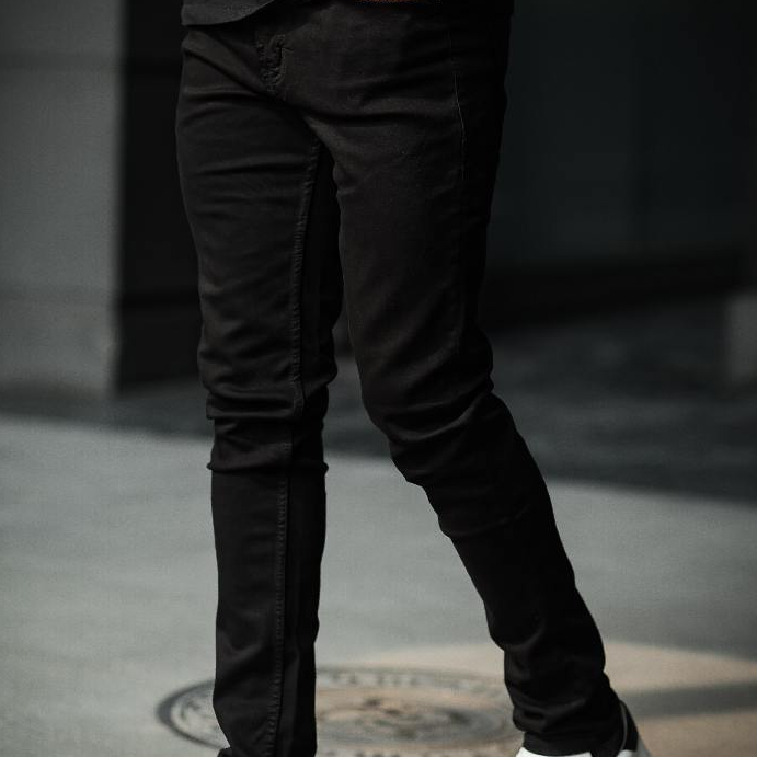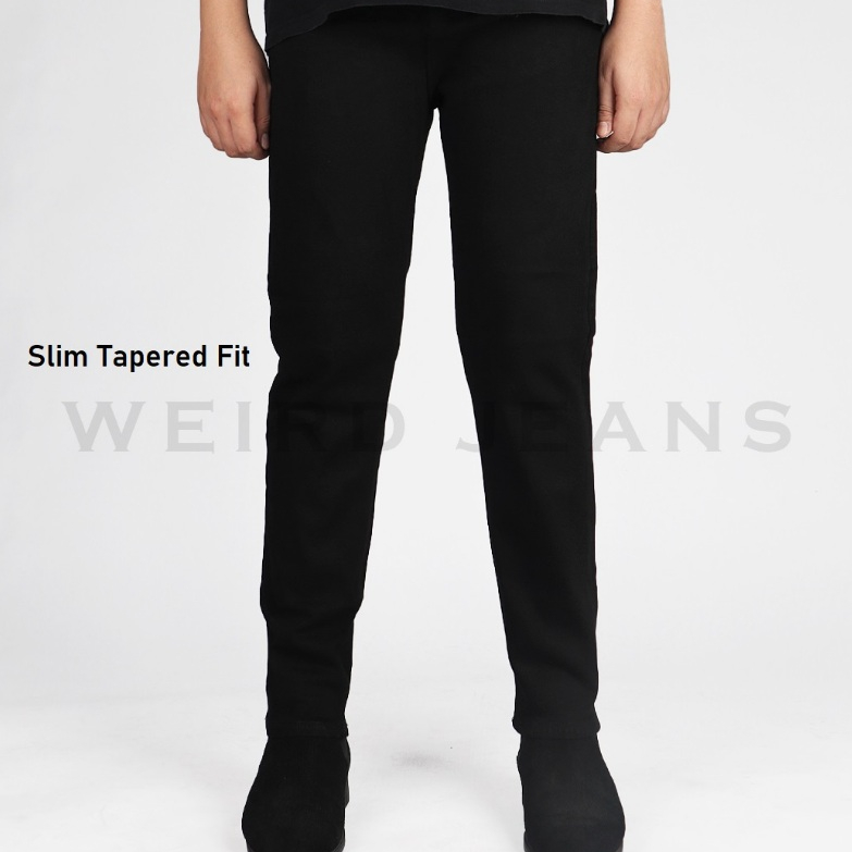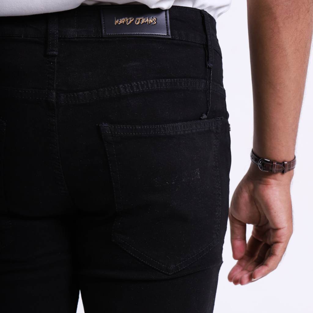 Weird Jeans - Black no ripped - Celana Jeans Pria Polos Slimfit Strech