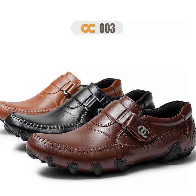 Sepatu Pria Kulit Asli OC 003 Odon Cibaduyut Pantofel Casual Hitam Coklat Lokal Slip On New Kekinian