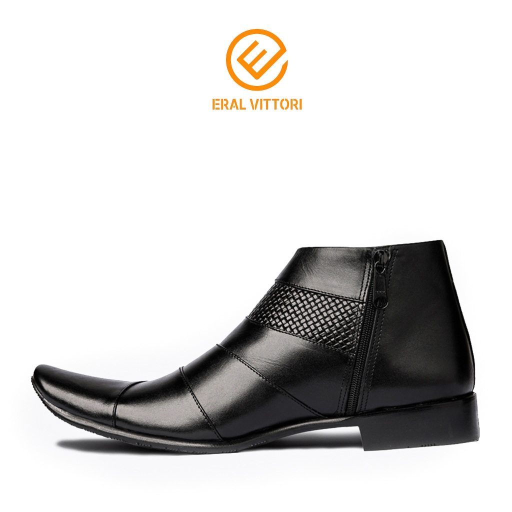 Eral Vittori - Lecter 016 Sepatu Pantofel Boots Tinggi Pria Resleting Samping Formal Kulit Asli