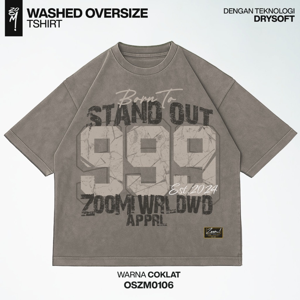 Zoomi Kaos Boxy Oversize OSZM0106 – 999 Washed Baju Washed Drysoft Full Katun