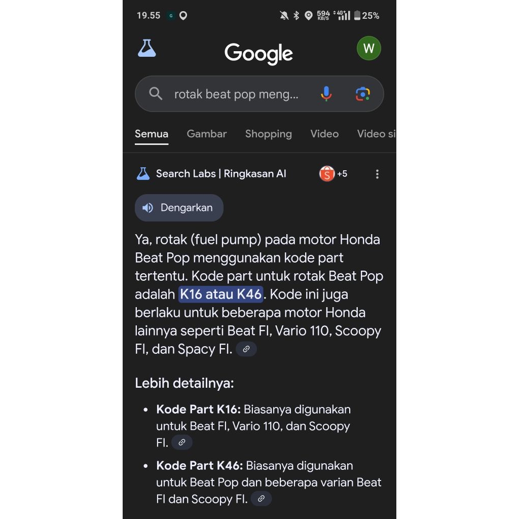 Paket rotak Honda kode k81/k16/k25/kzl untuk motor beat fi, beat Esp, vario 125 fi/old, CB150R old, verza lama, beat po