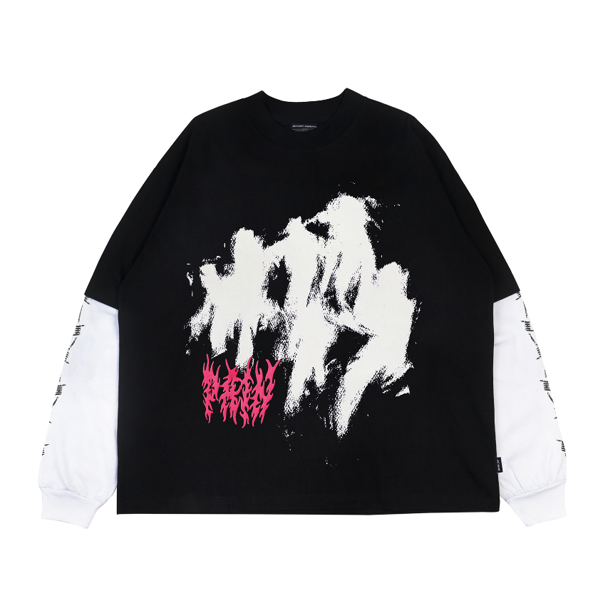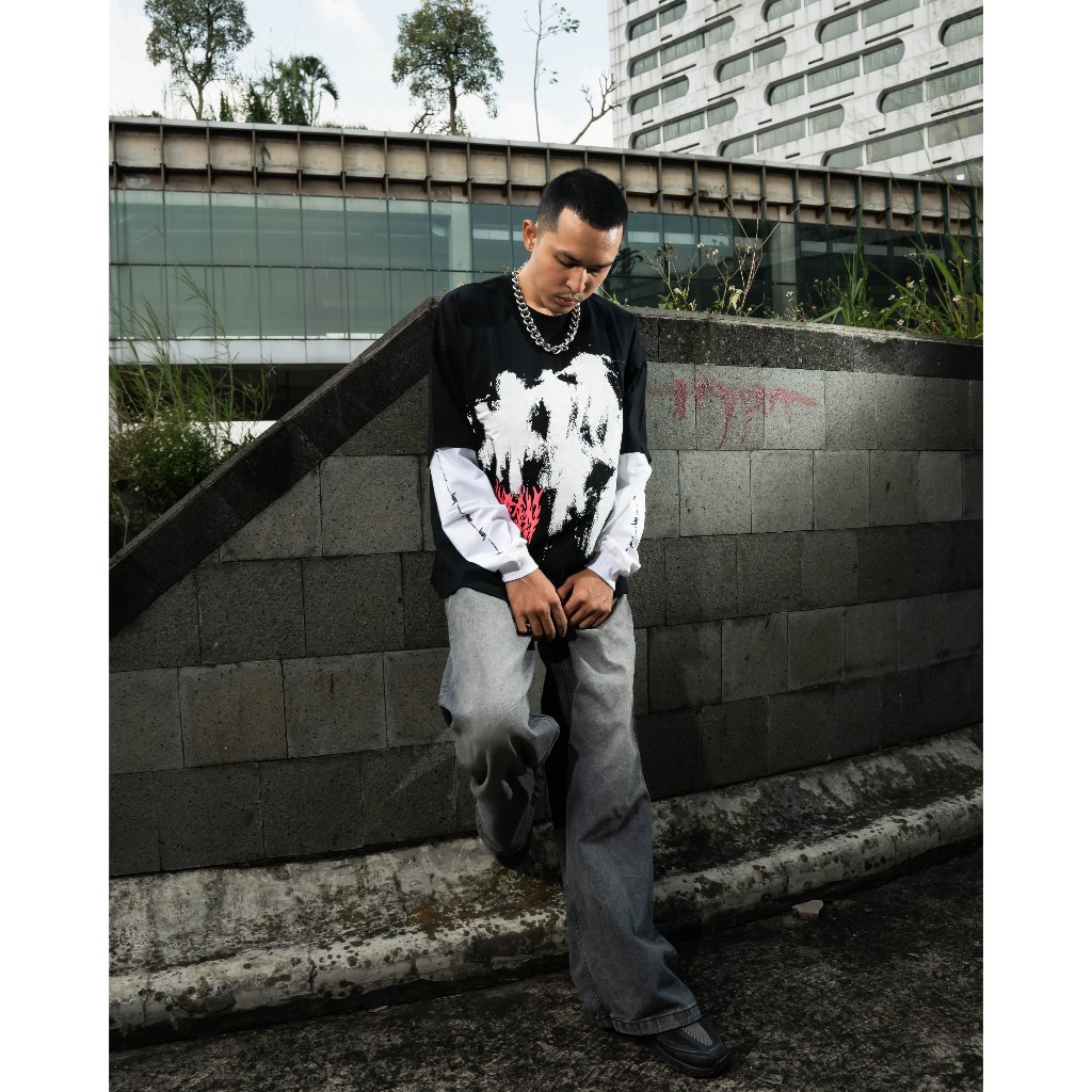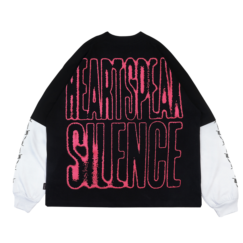 Boxy Oversized Double Sleeve Tshirt Heart Speak Silence Black Unisex - Cotton Combed 20s