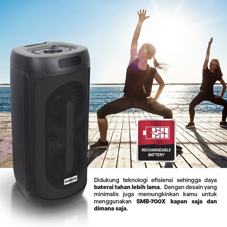 Sanken Speaker Active Portable SMB-700X Max-Bass Spiker Blutut Karaoke Party With LED Display RGB Light