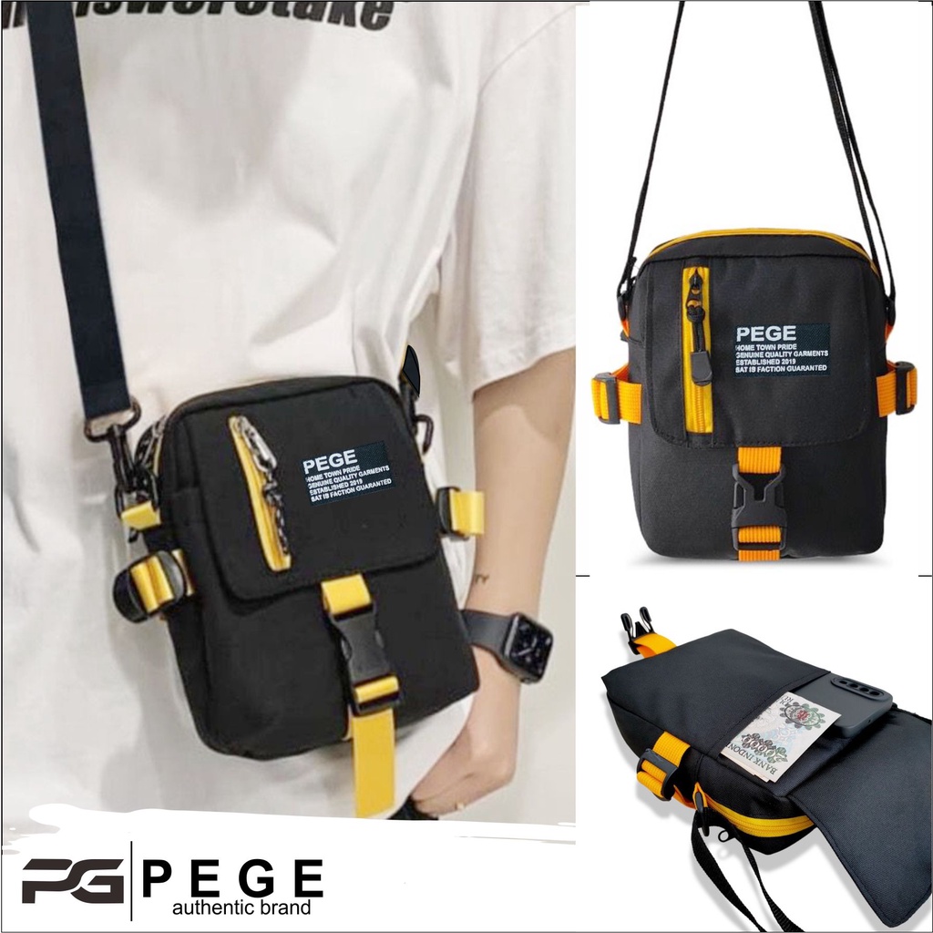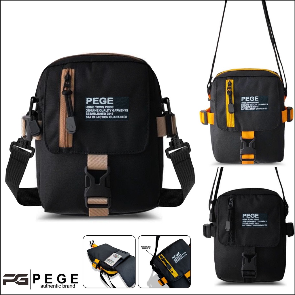 Tas Selempang Pria 2in1 PEGE Jaxton Model Slingbag Kombinasi Coklat - PG 8946