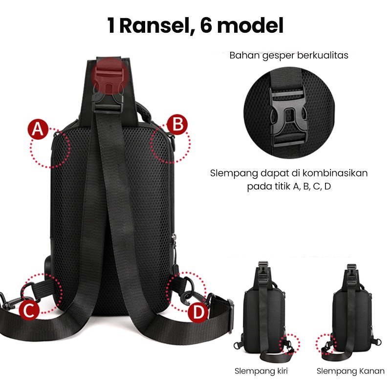 Freeknight Tas Selempang Pria Keren Multifungsi Sport USB Charge Fashion Slempang Waterproof TS713