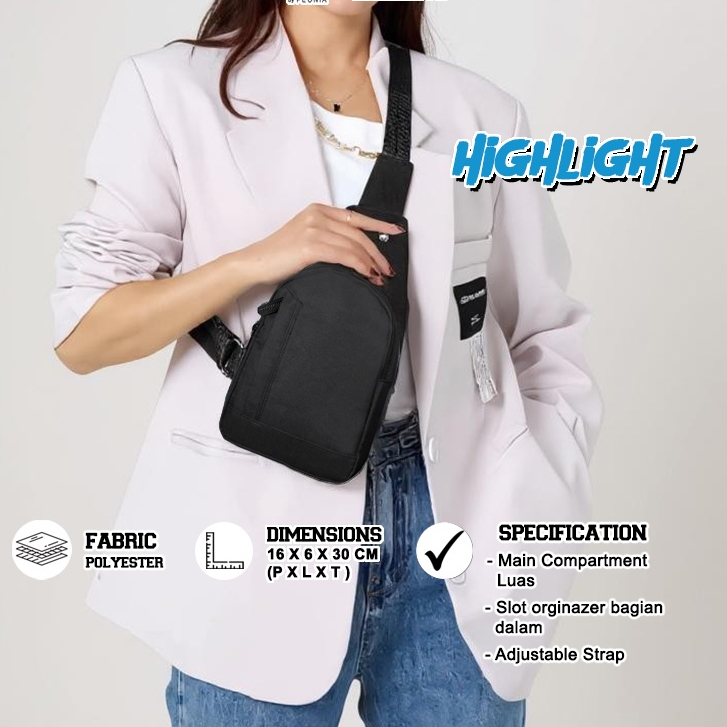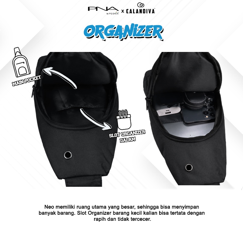 Calandiva NEO Tas Import Selempang Bahu Pinggang Pria Wanita Unisex Premium Sling Bag Gowes Travel Haji Umroh Outdoor S