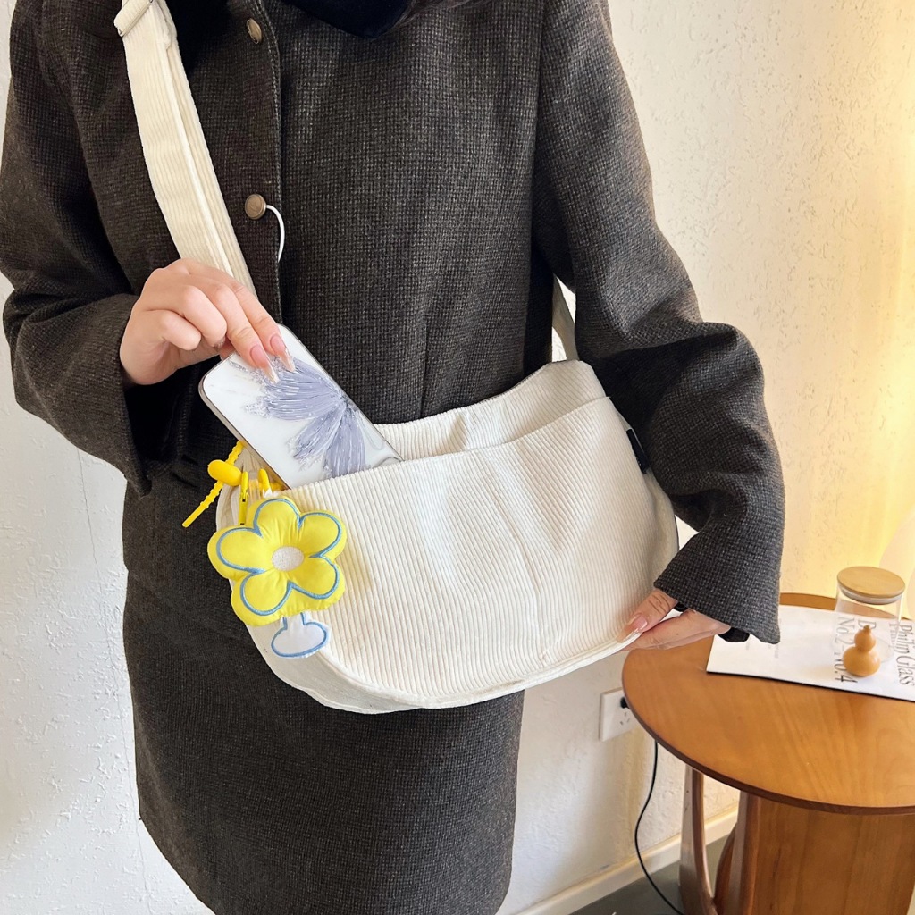 HOTANK Tas Kain Lembut Lipit Tas Selempang Wanita Tas Selempang Wanita Tas Kanvas Jepang Tas Kain Sederhana Berkapasitas