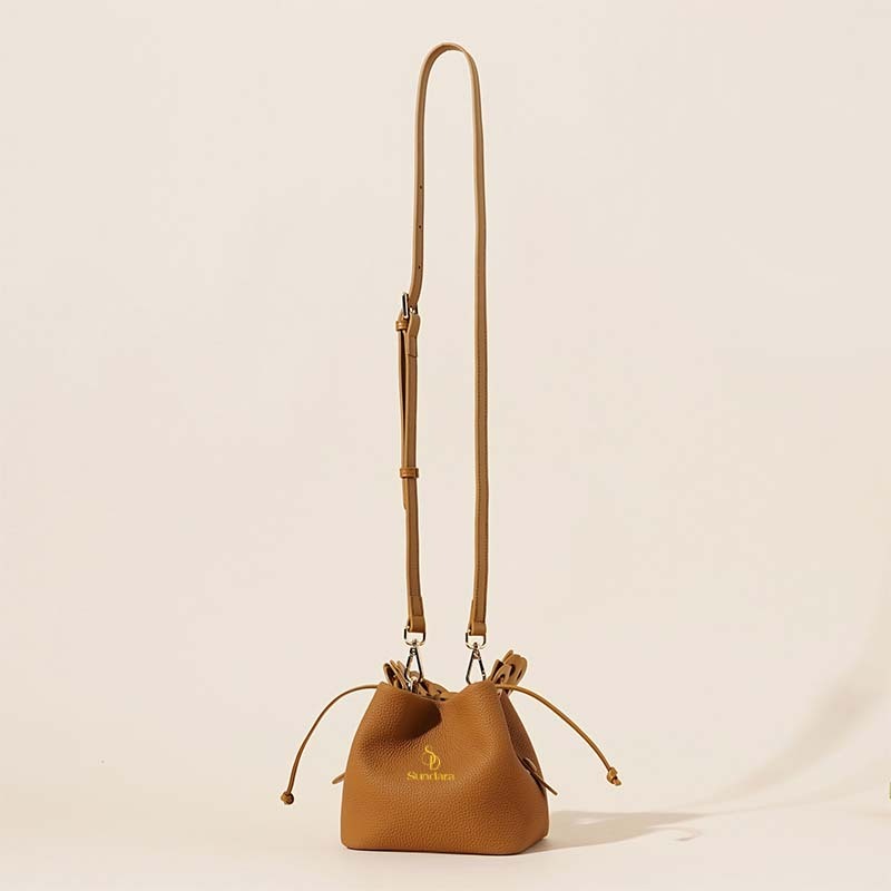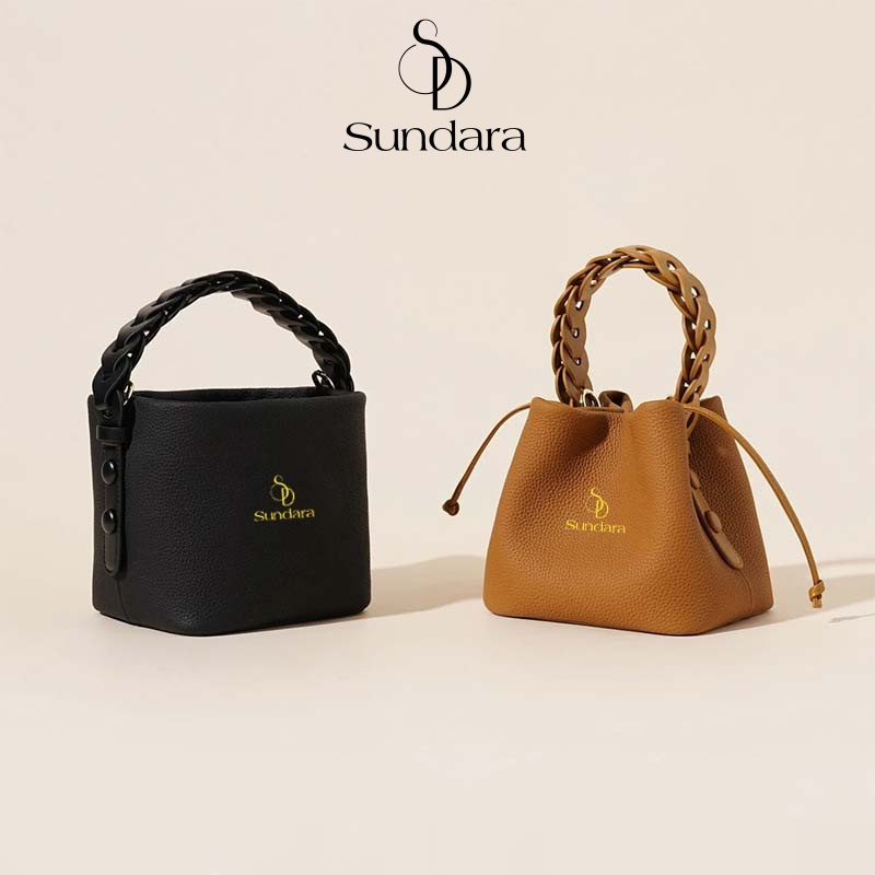 SUNDARA Tas Bucket Kecil Fashion Wanita Tas Tangan Tas Bahu Mewah Kulit Asli Lembut Pola Litchi Tas Selempang Tas Wanita